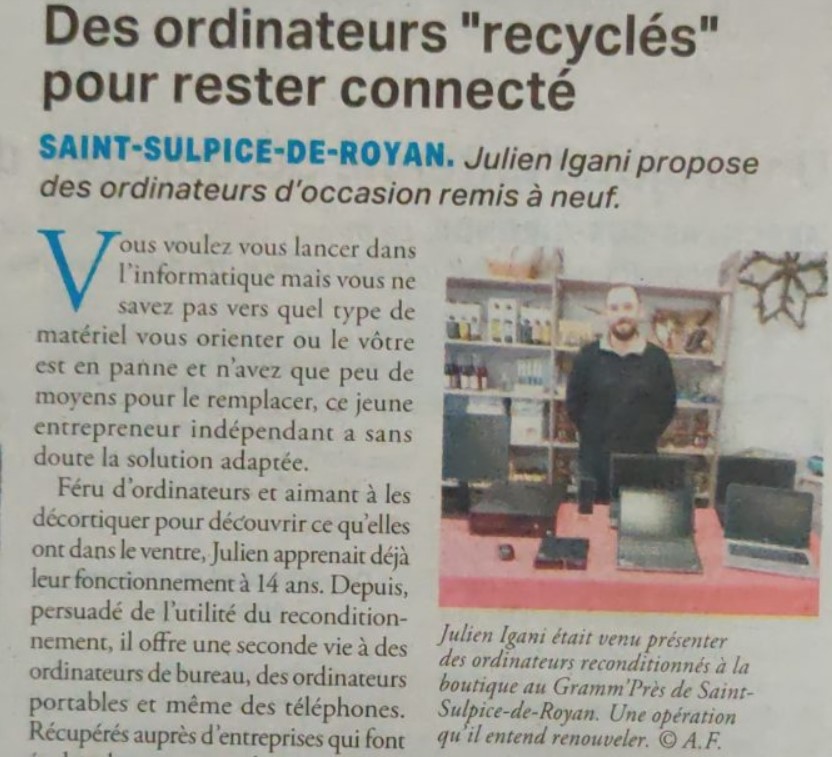 Je vous recommande vivement Julien I, qui propose une large gamme d’ordinateurs de seconde main à Nieulle-Sur-Seudre en Charente-Maritime.