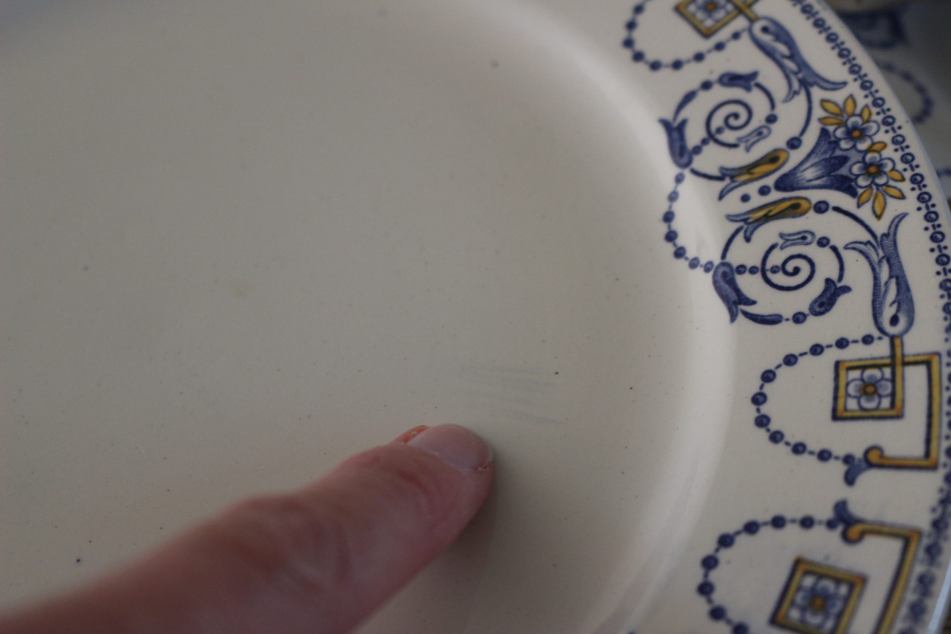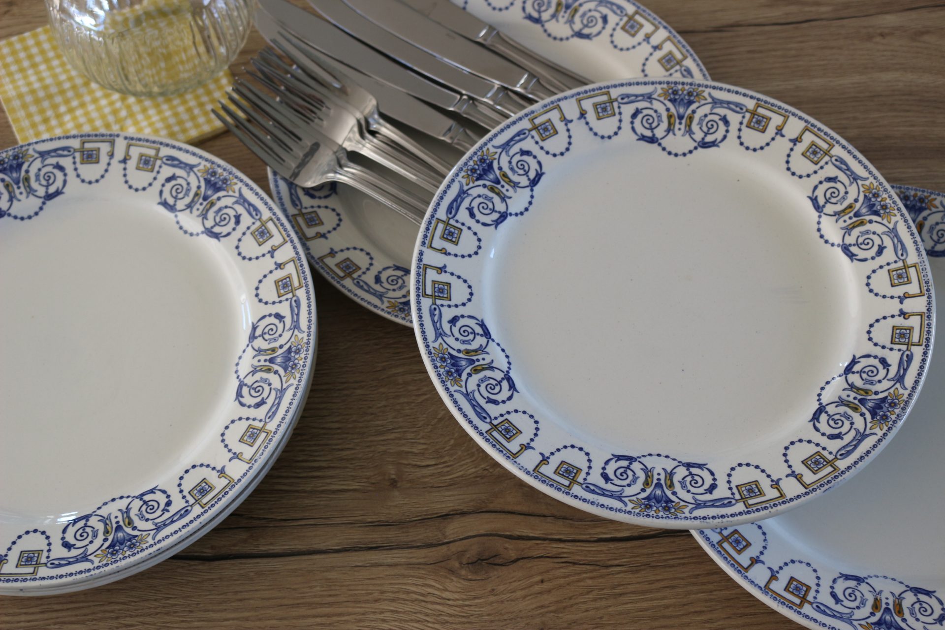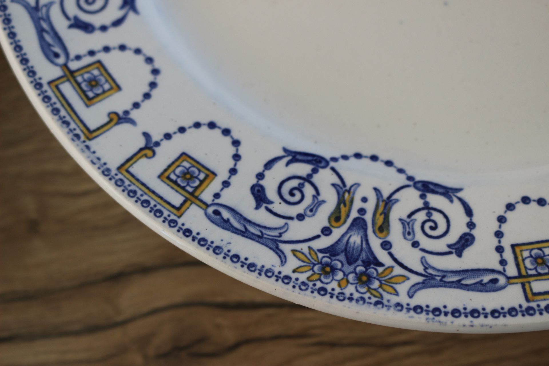 Imaginez les délicats motifs ornant ces assiettes, peut-être des fleurs stylisées, des bordures travaillées ou des scènes champêtres discrètes, typiques du charme français. La chaleur de la faïence, sa texture douce et sa robustesse témoignent d’une qualité conçue pour durer. Ces assiettes ne sont pas de simples supports pour vos repas ; elles sont les témoins silencieux de moments précieux, prêtes à accueillir de nouvelles histoires gourmandes au sein de votre foyer.