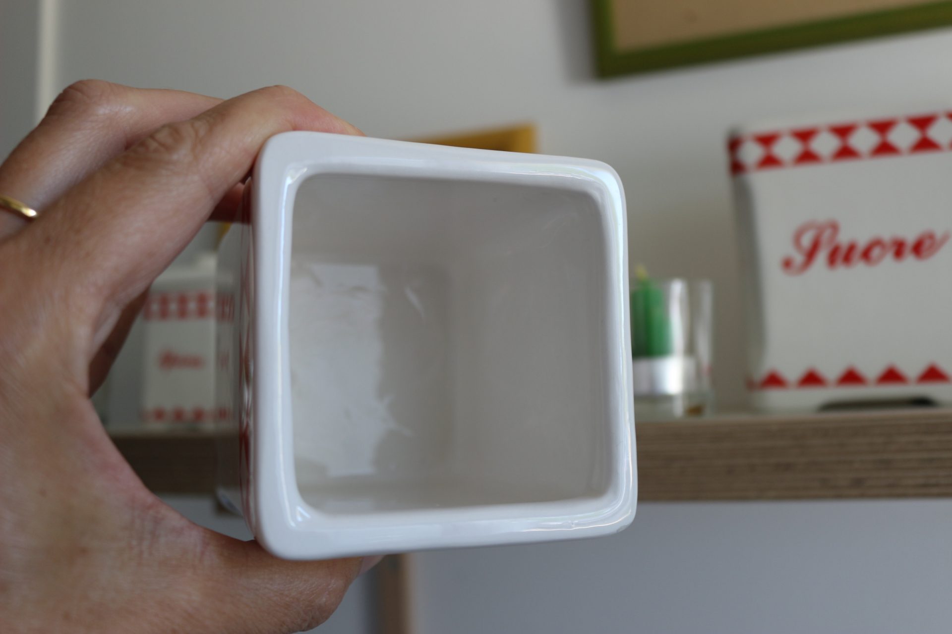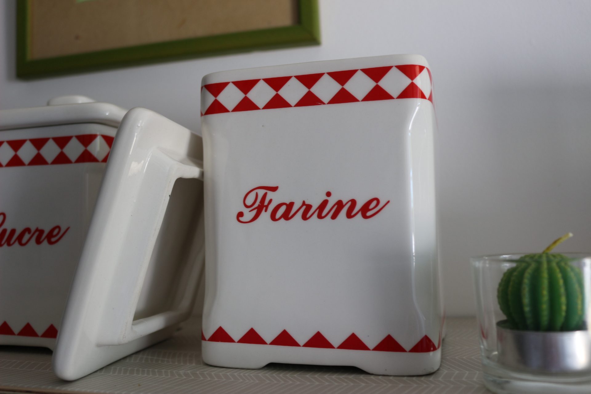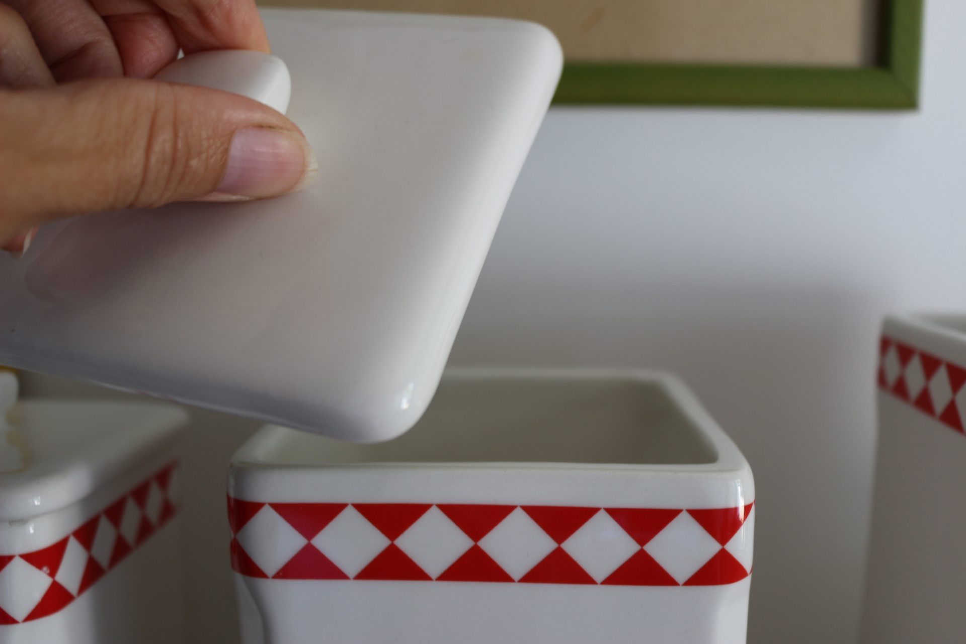 Chaque pot se distingue par son élégant fond blanc cassé, une teinte douce et chaleureuse qui apporte luminosité à votre plan de travail. La frise rouge qui orne le pourtour de chaque pot est un clin d’œil vibrant au design rétro, ajoutant une touche de gaieté et de dynamisme.