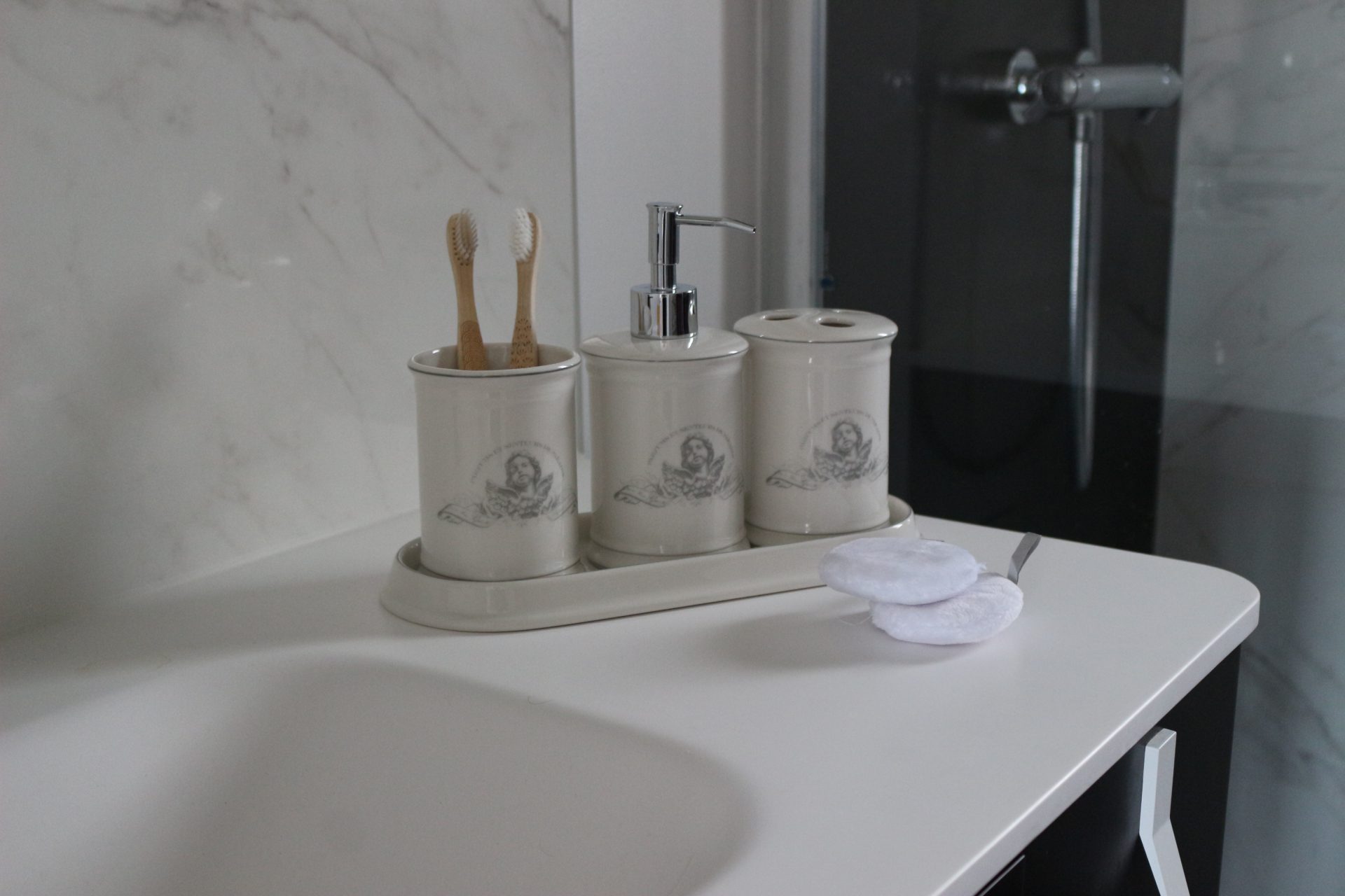 – Un gobelet raffiné pour vos brosses à dents ou vos cotons.